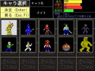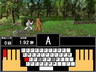 タイピングで敵を倒す格闘ゲーム。 キャラクターが豊富で何度でも楽しむ事ができます。 勝ち抜きモードでは、10人のキャラクターの中から好きなキャラクターを選択して他のキャラクター達を倒していくという、 タイピングが出来る人の腕試しに最適のモードです。 ある条件をクリアすると隠しキャラクターも使えるようになっていくので、プレイする毎にどんどん面白さが増えていきます。 修行モードでは、5種類のミニゲームをやりながらタイピングの基礎を磨くことが出来ます。 タイピングが苦手で今までタイピングゲームを敬遠してきたという人でも、 楽しんでタイピングの基礎を学ぶことができるようになっています。 タイピングが出来る人にも、これからタイピングを始めようという人にも、是非おすすめのゲームです。 (Reviewer TAKU) |