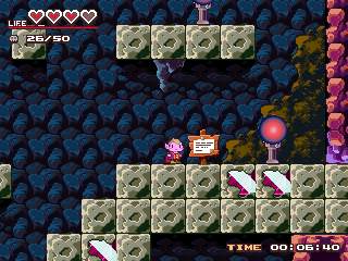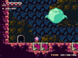| カワイイタッチのキャラとグラフィックが魅力的な2Dアクションゲーム。 勇者との戦いに負けて力を九つの玉に分けられてしまった魔王のアクジが、 力を取り戻していき勇者に仕返しをするのが目的。 初めは攻撃も出来ないのでちょっと頼りないですが、 ファイヤ・ダッシュ・三角蹴りなど、様々な力を身に付けていきます。 難易度がステージを進めていくごとに適度に上昇していくので アクションが苦手な人でも馴染めると思います。 一時間程度で終わるので忙しい人にもお勧めです。 このゲームではジョイスティックを使うことはできませんが、 フリーソフトの「Joy To Key」を使えばジョイスティックを使ってプレイすることができます。 おためしください。 (Reviewer RYO) |