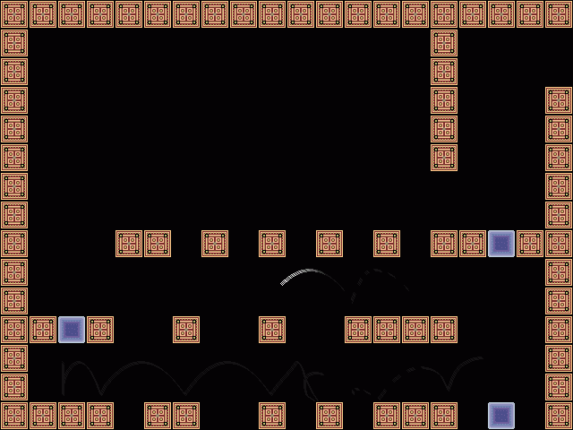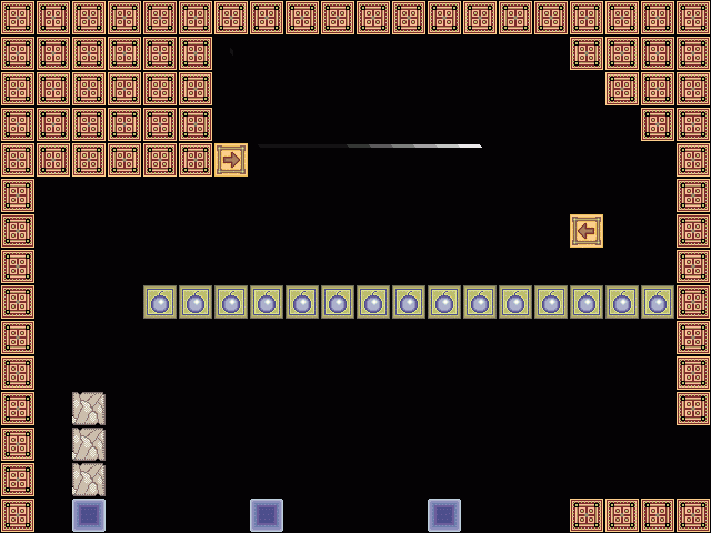 | 常に跳ね続ける白いやつを操作してゴールまで飛んで行くゲーム 単純さの裏に隠れたおもしろさがあります。 全20ステージの難関なステージがあります。 ブロックは4種類。 普通のブロック 壊れるブロック ジャンプブロック やじるしブロック これら4種類のブロックの特性をよく理解してプレイすれば全ステージクリアとなるはず それから、壁を利用して壁をキックして高いところにあがるような技もあります。 10機死亡すると1面からやり直しとなるのが地獄ですが、 またやりたくなるようなおもしろさがこのゲームにはあります。 スクリーンショットは過去のゲーム「ばうんど」のものです。 現在「ばうんど」はBOUND PLUSに統合されました。 BOUND PLUSでは、より迫力のあるグラフィックになっています。 ちょっとグラフィックがはでて多少見にくいところはありますが、本質は変わりないです。 ステージエディタがついていて自由にステージを作って遊べるようになりました。 サンプルステージもいくつか添付されています。 (Reviewer chao) |