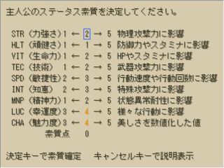 ゲームを始めると、いきなりステータス素質を決定しなければいけないので途惑う人も多いでしょうが