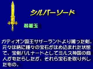 | RPGツクール2000で製作された本格派RPGです。 私にとってのフリーゲームの短所は、説明書やパッケージがない為に、 どの作品もその世界感を説明するため、長々としたオープニングを入れている点です。 すぐにゲームを始めたい私にとっては、それは苦痛に感じる事も多く、 友人にいわゆるやらず嫌いだと言われている原因でもあります。 でも、このシルバー・エニグマ(以下S・E)は、オープニングからすっきりしており、 すぐに始めたい私にとってはすごく良いと思いました。 ただ、「おいおい、○リー・ポッタかよ?」とつっこみたくなる魔法学校がスタート!! 正直ここで止めようかと、思いました。 が、、止めようと思い主人公を動かすと、アッというまにイベントが、、 その後は怒涛のように話が面白くなり結局最後までやる破目に、、、。 作者のゲンダイさんは、 「昔、寝る間も惜しんでプレイしていたロールプレイングゲームを復活させたいと思い、製作しました。」 とご自身のゲームの紹介に使っておられますが、 このゲームには、その懐かしい匂いがします。 その理由はいろいろあるのですが、一番感じたのは、街の事です。 街の人の会話は、重要な事から、どーでもいい事まで、いろいろあり(伏線だらけですね。) さらに、シーンが変わると会話の内容までもが、変わる事には驚きました。 そして、なによりも1つの町に対する愛情が感じられるのです。 皆さん、思いだして見てください。今までに自分がプレイした中で、一番お気に入りのロールプレイングゲームを。 その中にきっと、「ホッと」できる町があるはずです。 その町に実際は行った事は勿論ないのですが、 人の声、風の匂い、雰囲気など、なんとなく居心地がいい町が、1つはありますよね。 私は、ガディオンにソレを感じました。 へんな挨拶をする少女、いつまでも騎士団長の帰りを待ち続ける老人、噂話好きなおっさん、 育てた花壇に悪戯され怒る男、これからの進路に迷う魔道師、などなど、 となりに住んで居そうな人が生活する町ガディオン。 あなたもガディオンに出かけてみていかがでしょうか? ストーリーについてですが、くわしくは書けません。 話がわかると面白くないですからね。 簡単に書きますと、主人公、ライバル、幼馴染の少女っていう何処にでもある設定を活かしながら、 なかなか上手く話を立ててあると思います。 1章になると、成長を遂げた主人公が仲間と出会い初めてロールプレイングゲームらしくなって行きます。 剣士や、神官も登場し物語が動きだし話が広がっていきます。 ぜひ、体験してみてください。 あと、戦闘についてですが、これは、シンプル!!。 ものすごくシンプルです。 でも、プレイしていて飽きないのは色々な工夫がしてあるからだと思います。 ず、戦闘中のイベントが多く、ボス戦ごとにそれに合わせたBGMに変えてあり臨場感が増しています。 必殺技では声が入るなど演出に力が入っています。 私が一番驚いたのは、ある武器を手に入れ戦闘を行うと、戦闘中に、、、、。 とにかくおおーっと思わせる演出がたっぷり入っています。 戦闘のバランスはキツメで、私は最初の敵にすぐに負けて、、、。 (ここでもゲームをやめそうになりました。) ただ、ゲームを進めていけばそれが歯応えになり、次第に絶妙なバランスに変わって行きます。 でも、みなさん、ボス戦まえでは、セーブを忘れずに。。 ゲームはこれから、、、ってところで前編が終わりすごく気になります。 私は気になり、今夜も眠れない。。。 (Reviewer MASARU) |