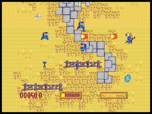 でてきたアイテムに球を当てることによってアイテムの種類が変わり、武器も4種類あります。