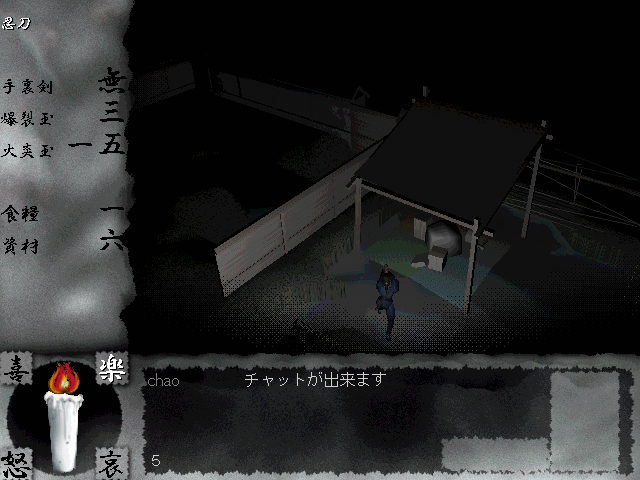 | ネットワーク時代劇3Dアクションゲーム 江戸時代を舞台とした、生きるか死ぬかのサバイバルゲーム! 時は深夜、臨場感あふれる5種類のマップ。 武士・武者・忍者・鉄砲兵・僧兵等など個性ある9つの職業。 刀・槍・手裏剣・弓矢・爆弾・鉄砲などの武器を駆使して敵を倒す。 闇の中から忍び寄る足音・・・ 狭い視界、暗闇の向こうに見えるかすかな刀の光り。 刀で攻めるか 飛び道具で攻めるか! 一瞬も気を抜けない緊張感にどこまで耐えられるか! プレイヤー同士の瞬時の駆け引きが生死を分ける! 生き残った者にしか明日への道は無い。 |