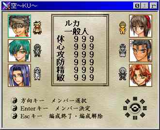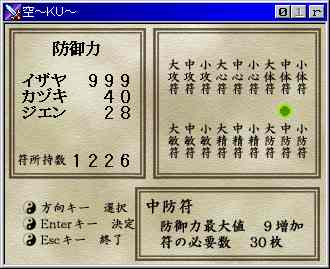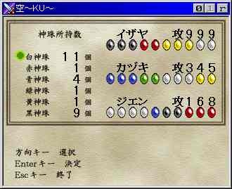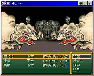 物の怪と人間が共存する大陸「大羅天」 物の怪と人間はそれぞれ反目しあいながらも 互いの存在を認め、共存してきた しかし、一部の物の怪が人間を 喰らうようになっていった 人間を喰らい、邪悪化した物の怪を 人間たちは「妖鬼」と呼んだ・・・ ゲームタイトルと上のプロローグから見てもわかるように 思いっきり「和風」なRPGです。 このゲームでの魅力はズバリ「勾玉システム」と「能力アップ」システム。 好きな勾玉を装備し、好きなようにキャラクターを強くすることができる。 その気になれば一人だけ異常に強く育てることも可能です。 また一人一人のキャラクターの個性が強く 全員が主人公のように思えるほどの個性の強さです。 もちろん主人公だって負けてはいませんが。 難易度はあえてつけません。 どのキャラクターをどのようにパワーアップさせるかによって変わりますから。 そして各キャラごとのイベントもあり 指定キャラクターを入れていないと起きないイベントなどがあります ゆえに何度もプレイしたくなる衝動に駆られます。 ストーリー、キャラクター、システム。 どれをとっても最高のゲームだと思いますので是非プレイしてみてください! (Reviewer 津霊奔) |