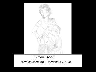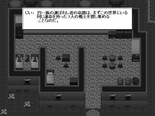 | RPGツクール95で作られた長編ファンタジーRPGである。 自然に恵まれたとても美しい星にあるローラシア大陸。 そんなローラシア大陸の山里、ナチュレの村に住む円一族の兄弟、円脩と円翔。 彼らがこの物語の主人公である。 主人公の円脩はある日背中に謎のアザが現れ 円一族の宿命である大いなる災いから星を救う為 弟の翔とともに7人の戦士を探す旅に出る。 一見ありがちなストーリーのようだがその実非常に奥が深い。 このゲームは非常に自由度が高く最初に何をしていいのか 戸惑うかも知れないが、慣れてくるととても面白いものである。 モンスターは洞窟や一部の辺境の地などにしか現れず、 普段は滅多にモンスターに遭遇することはない。 また飽きないようにとても深く難しいダンジョンも用意されている。 多彩なイベントや多くのダンジョンをクリアしながら仲間を集めエンディングを目指す。 プレイヤーによって3種類のレベルが選択できるのも嬉しいところである。 エンディングにはきっと予想もしなかった感動の結末が待っているだろう。 (Reviewer 紅月 時雨) |