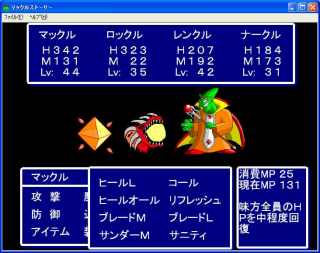 | マックルが、魔王のマックル狩りに危機感を持った王の 命を受け打倒魔王を目指して冒険するところから物語りは始まります。 戦闘画面を見れば分かるように戦闘は1ターンの行動を入力するターン制バトルです。 戦闘難易度はほぼいい感じとなっていて、楽しめると思います。 世界中にちらばるマックルコインを集めるのもなかなか楽しいと思います。 魔法はレベルアップによって習得するのですが、このゲームでは魔法を装備しないと使えません。 魔法を装備するということによって戦闘中以外でも戦闘に向けて準備するという思考が必要となります。 またこのゲームの特徴として、ある程度冒険が進むと職業を転職もしくは副職をつける)ことができるようになります。 プレイ時間はだいたい20〜30時間ほどでしょうか。 謎解きも少し考えると答えが見えてくると思います。 ぜひプレイしてみてください。 (Reviewer kamo) |
