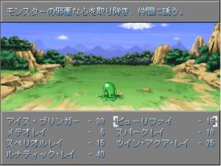 遙か昔、パラ王国という国が栄えていた。 しかし、その国は家臣「グルズ」によって一瞬にして滅びてしまった。 これは、今は大変少なくなったパラ族の末裔である主人公達が繰り広げる正統派RPGである。 今では考古学の中でしか見られなくなったパラ族とパラ王朝にまつわる物語です。 始まりはギンの持っていた謎の石についての情報を探しに行くことから。 そこから次第にパラ族についての謎が明らかになっていく・・・ このRPGの最大の特徴は「モンスターを仲間にできる」ということです。 方法は仲間が使える「ピューリファイ」という魔法をかけるだけです。 強いモンスターになるほど確率は低くなるので、ある条件を満たすと(HPを何割以下にする等) 確率が上がります。 事前にセーブをしてあきらめずに挑戦してみましょう。 仲間にできるモンスターは限られていてゲーム中でも情報があります。 一度情報を確かめていないと出現しないモンスターもあります。 くまなく探してください。 モンスターだけのパーティじゃないと入れないところも存在します。 すぐ目に付くのが「闘技場」です。 仲間にしたモンスターを出場させることができます。 上位に入賞すると賞金などが貰え大会によっては貴重な景品がついたりします。 モンスターを強くして冒険を楽にしてください。 難易度は結構高めです。 ダンジョンはなかなか広くエンカウント率も高めです。 雑魚敵もHPが高かったり、やたら固かったり強力な攻撃をしてくる敵もいます。 ボスも、もちろん強いです。 油断しているとあっという間に全滅してしまうでしょう。 モンスター集めの他にもダンジョン攻略や武具集め、強敵に挑戦などやり込み要素が沢山あります。 プレイヤーを飽きさせません。 最後に、このゲームについてまとめると @ストーリーは正統派 Aモンスターを仲間にでき、育てられる Bやり込み要素が充実 作者サイトに攻略情報や他にも良作のRPGがあります。 (Reviewer 流星) |