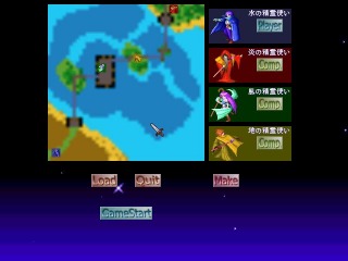 | このゲームはターン制のシミュレーションゲームです。 マスターや呼び出したクリーチャーと呼ばれるモンスターを操って他のマスターを全て倒すとクリアです。 自分のマスターがやられちゃうと負けですのでご用心。 基本的には自分の番でクリーチャーを召喚して呼び出したクリーチャーで、 マスターや他のクリーチャーを倒すのが目的です。 しかしクリーチャーを召喚するのには条件があります。 毎ターン1体しか呼べませんしマスターのMPを消費します。 マスターのMPは限られていますし強いクリーチャーほどMPをたくさん消費しますので、 いかにクリーチャーをうまく召喚するかが戦略の鍵になります。 さらに戦略を増す要因となっているのがフィギュアと呼ばれるものです。 これは移動も攻撃も出来ず、一撃で破壊されるほど弱いですが、 フィールド上に味方のフィギュアがあると毎ターンMPが多く回復しますし、 フィギュアそのものもクリーチャーを召喚できますので戦略上とても重要になります。 召喚できるクリーチャーも多種多様です。 初期状態で6種族29種類存在し、攻撃がメインのクリーチャー、回復がメインのクリーチャーといった感じで、 クリーチャーにより得意不得意があります。 また種族により水属性は水中での戦闘が得意、 風属性は空を飛べるものが多いといった感じで、 種族でも違いがあるのでいかにこれらのクリーチャーを使いこなせるかが重要です。 マスターやクリーチャーが使える魔法も種類が多いです。 直接的を攻撃する魔法、回復や補助魔法、地形にかけてそこにいるユニットに影響を与える魔法、 変わったところでは地形そのものを変えてしまう魔法と多種多様です。 さらにこのゲームではアイテムというのが存在します。(現在200種類) これをマスターやクリーチャーに装備させることで特殊能力や耐性を持たせることも可能です。 アイテムは戦闘終了後にしか手に入りませんのでアイテムコンプリートをめざすのも。 他の機能としては 通信対戦・・・CPUとは違った戦い対人戦で楽しめます。 マップエディタ・・・自分のオリジナルマップを作ることができます。 こう書くと難しそうですが常連の方がかなり詳細なマニュアルを作ってくださっていますので、 じっくり読めば初心者でも楽しめると思います。 なお、このゲームはPrologueというシェアウェア版もありそちらではシナリオ編も楽しめます。 (Reviewer TK) |