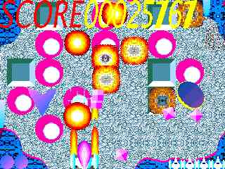 パワーアップするといろいろな玉が打てるようになる。縦スクロールゲーム