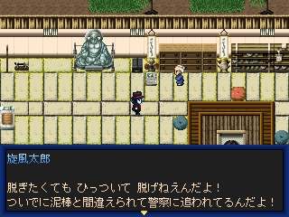 主人公、「旋風太郎」はごく普通の街に住むごく普通に暮らしていたごく普通の青年でしたが、 ある出来事をきっかけに謎のヒーロー「旋風仮面」として正義の味方をやるハメになってしまいました。 そんな彼の活躍と苦悩とその他諸々を描いた笑いあり涙ありのヒーローコメディです。 所々に作者独特のセンスが溢れていて楽しめること必至です。 特に毒の混じった台詞の使い方がプレイヤーを笑わせてくれます。 全22話+αのストーリーですが、展開が早いので比較的楽にゲームが進みます。 ミニゲーム等のお楽しみ要素結構、やり込み要素ありますので長く遊べるも知れませんよ? 詳しい操作方法などはゲームの方でおもしろおかしく解説してくれますので、 ここではメインとなる三つのゲームモード+αを紹介します。 旋風アクション 「旋風仮面」本編が楽しめます。 鉄板で旋風を起こし敵を吹き飛ばして転ばせ、 踏みつぶして倒すと言うのが大まかなルールです。 操作方法が少し独特ですので多少の頭脳と慣れが要求されます。 旋風パズル 全10ステージからなるパズルゲームです。 スコア形式で一定のスコアを出すとご褒美が・・・。 適当にやってもクリアできますが、余りスコアは貰えません。 迅速勝つ正確に攻略し、高得点を目指しましょう。 旋風バトル外伝 全6ステージのアクションゲームです。 群がり来る雑魚キャラをバッタバッタと、 いやバッサバッサと蹴散らしていくだけの簡単ルールです。 爽快感があるので結構はまりますよ? パスワード ある条件を満たすことで表示されるパスワードを入力することで色々な特典が獲得できます。 変なお遊びや、違う難易度でプレイできたりと色々なモードが楽しめます。 頑張ってやり込んでやり込んでパスワードを取得しましょう。 (Reviewer RYO) |