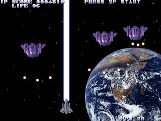 | 全6面の正統派縦スクロールシューティング。 このゲームの第一の魅力はグラフィック、これに尽きます。 画面を見ても解るとおり、プリレンダリングで細かく描かれた自機や敵キャラ、 そして見とれてしまうほど美しい背景に目が行くことでしょう。 第二の魅力はBGM、各ステージごとに振り分けられた美しい音楽や、 息もつかせぬボス戦を盛り上げる派手な音楽など。 プレイしていると聞き惚れること請け合いです。 第三の魅力は個性豊かな5種類の機体。 このゲームのシステムは各機体が持つ(例外あり)二種類の武器を 使い分けていくだけというシンプルな物なので、 初心者にもなじみやすいのが特徴の一つです。 各機体の性能は以下の通りです。 TYPE-00 ワイドショットとノーマルショットを装備、一番扱いやすい機体です。 TYPE-01 ミサイルとクロスショットを装備、 ミサイルがやや使いにくいですが非常に強力です。 TYPE-02 ホーミングショットとワイドショットを装備、初心者向けの機体です。 TYPE-03 ビーム砲とワイドショットを装備、ビーム砲が強力ですが その分機動力も鈍るので注意して使いましょう。 TYPE-04 ノーマルショットのみ装備、 この機体だけ武器が一つしかありませんが機動力は一番です、上級者向き。 どの機体にも一長一短な所があるので、うまく使いこなしていきましょう。 他にも二人同時プレイが出来たり、ステージセレクトが出来たり、 作者のリプレイを鑑賞することが出来たりと、 シューティングゲームの面白さが全て詰まっているようなゲームになってしまっています。 やりすぎですね。(いい意味で) (Reviewer RYO) |