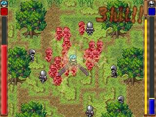 このゲームはRPGツクール2000でゲームコンテストのグランプリを目指す、 一人のゲームクリエイターの奮闘を描いた物語である。 と言う前フリはいいとして他のRPGとは少し違い、 ゲームを作りながらゲームを楽しむという、ちょっと変わった内容になっています。 ゲームを制作したり、ネタ探しのために学校やお店などいろんなところを回るリアルパート、 その作ったゲームを「テストプレイ」するゲームパートの二つに分かれています。 特に後者の方は群がる敵を一気に倒していくという爽快感が味わえます。 一言で言うなら「真・三国無双ライク」と言えばわかりやすいでしょう。 一度はまるとやみつきになります、マジで。 このゲームプレイしていくごとに色々な要素が追加されますが、 そこはちゃんとゲーム内で解説してくれますので、大まかな操作方法だけ記しておきます。 基本的な操作方法は他のツクール2000のRPGと同じですが、このゲームでは斜め移動ができるようになってます。 (設定で変更できます) ただ普通に斜めに押すだけでは移動できません、上下左右のどちらか一つを押し続けながら斜めに押しましょう。 リアルパートでの操作 メニューは開けません、変わりにヘッドライトがつきます。 これはネタ探しには必須ですので有効に使っていきましょう。 ゲームパートでの操作 基本的に他のツクール2000のRPGと同じです。 戦闘での操作 決定(ZorSPACEキー)で攻撃、取り消しキー(XorESCキー)でジャンプします、 攻撃範囲は武器によって違いますがどれもかなり広めです、 ただし敵に近づきすぎると当たらないことがたまにありますので、 1マス分離れてから攻撃した方がよく当たります、また、ジャンプで敵を跳び越えることができますが、 むやみやたらにジャンプすると敵陣のど真ん中に飛び込んでしまいタコ殴りにあってしまうので気をつけて下さい。 (Reviewer RYO) |