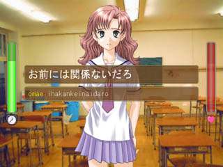 3人の女の子との会話をキーボードで打っていくタイピングゲームです。 画質、音質共に高水準な上、 なんと会話パートではヒロイン3人ともフルボイスという、素晴らしい出来になっています。 タイピングパートでは制限時間内にワードを正しく入力できると、 画面右にあるゲージが少しずつ溜まっていきます。 タイピングが早ければ早いほどこのゲージは多くたまっていき、 逆に制限時間内に入力することが出来ないとゲージは溜まりません。 このゲージを満タンまで溜めることが出来なければ、ゲームオーバーとなってしまいます。 このゲームはブラインドタッチ練習用ゲームではないので、 タイピングを一から始める人にはあまり向きませんが、 難易度の設定が出来るのでタイピング初心者の方でもクリアしやすいよいに作られています。 頑張ってエンディングまでたどり着きましょう。 (Reviewer TAKU) |